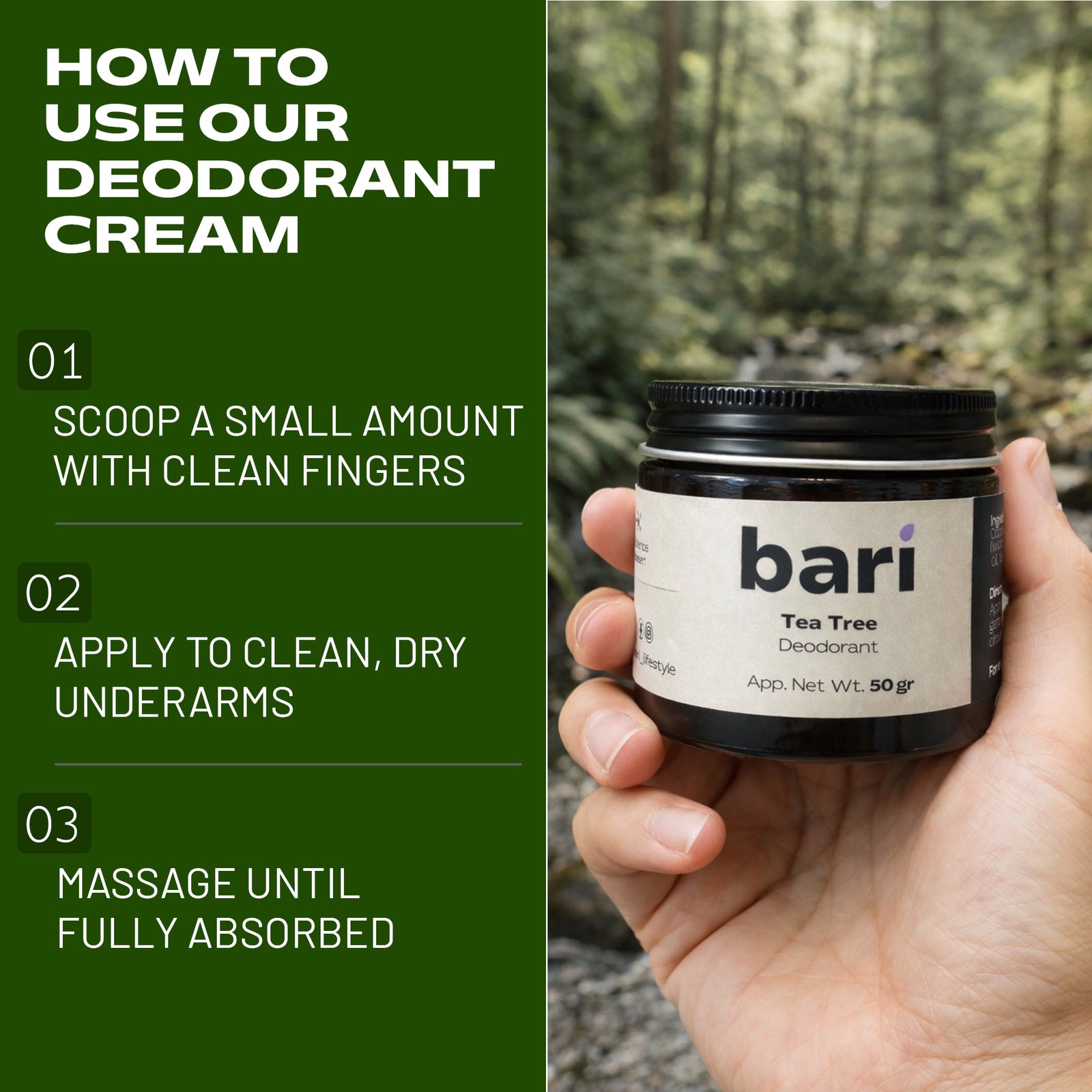 Use daily on clean skin. Apply fingertip-sized amount and gently massage into your underarm in circular motion.
